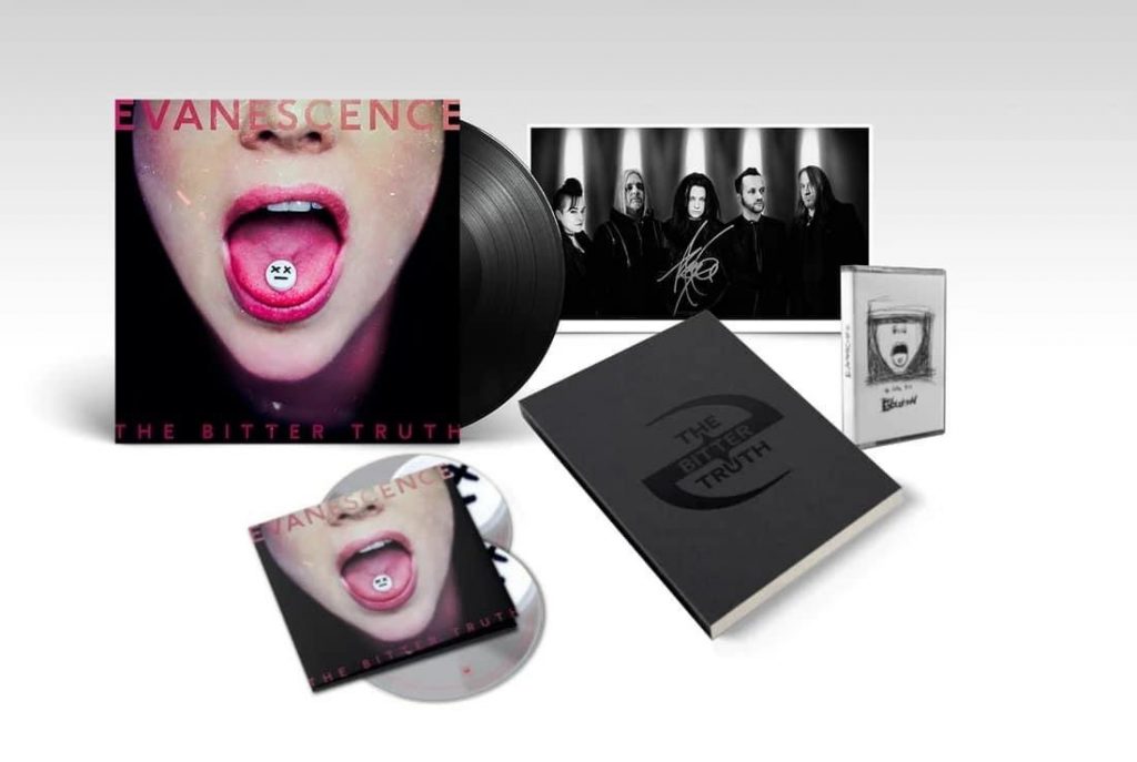 This exclusive REVOLVER Magazine bundle includes The Bitter Truth box set (which includes a special double CD, cassette, journal and print), single Black VINYL LP and an autographed hand-numbed print by Amy Lee herself!